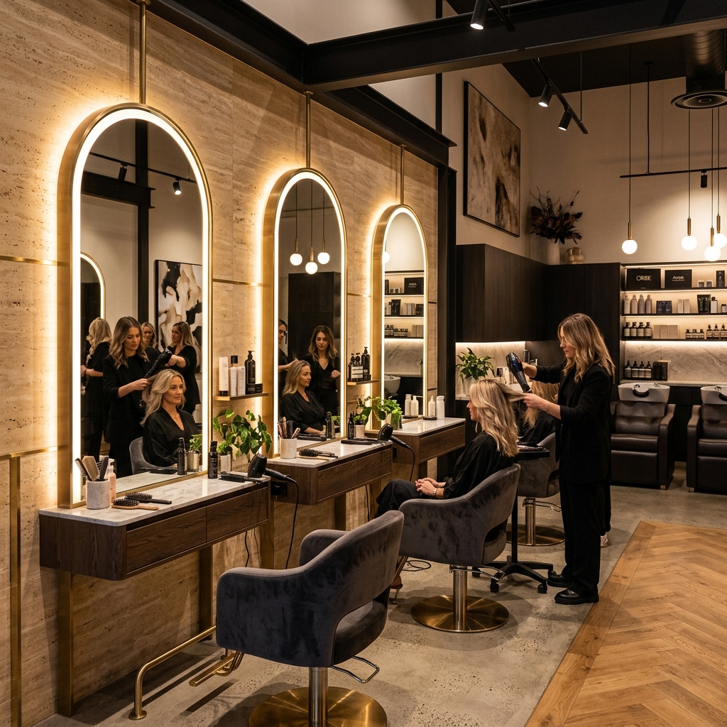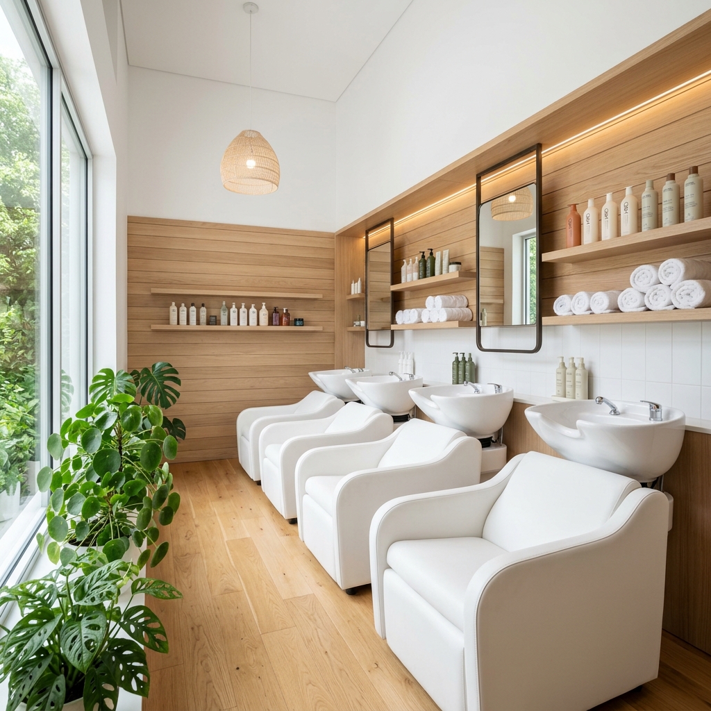 Bayan kuaförleri için konforlu ve estetik çalışma koltukları.