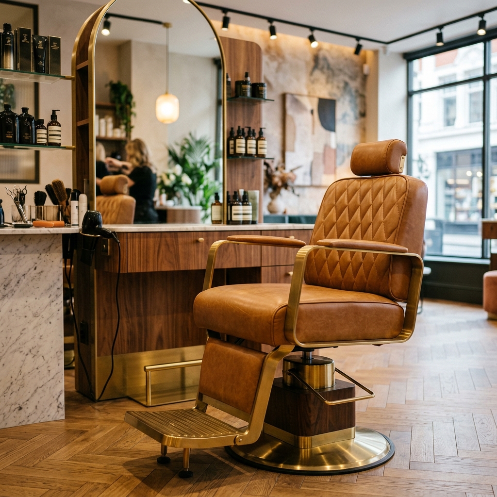 Ergonomik ve şık kuaför, berber ve bekleme koltukları.